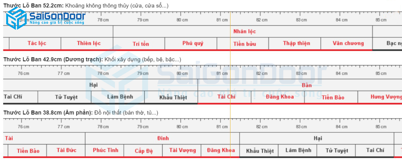 Chiều rộng cửa nằm trong khoảng: 0,81 – 1,07 – 1,25 – 1,46 (mét)